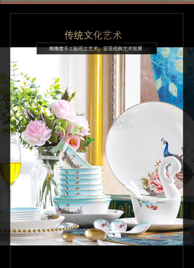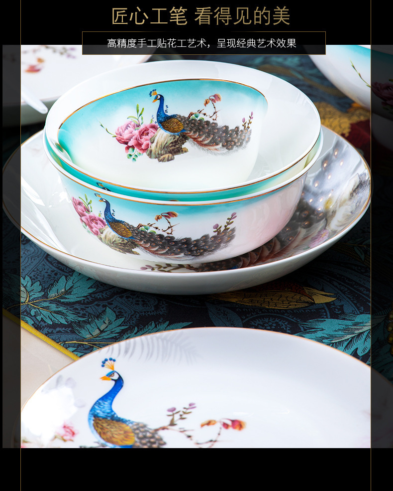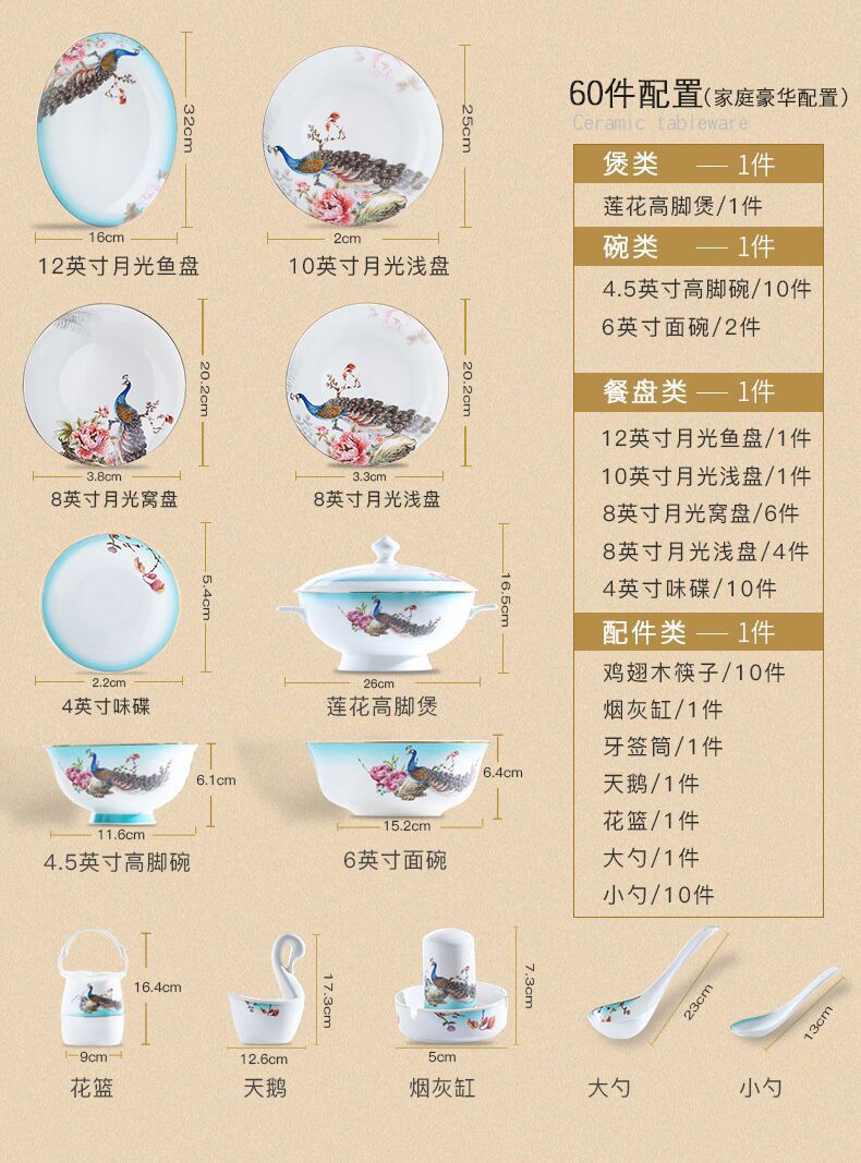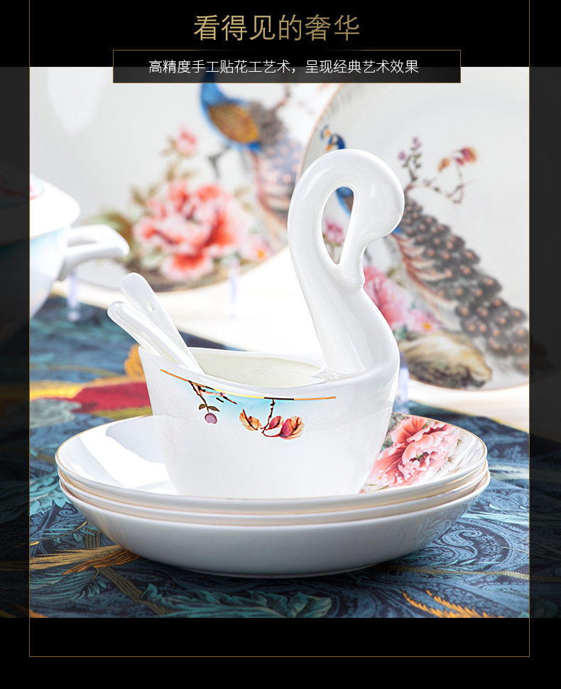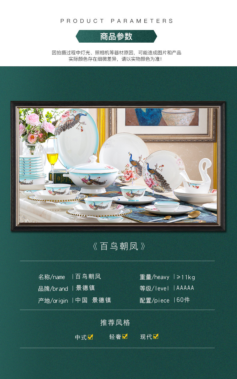 60 head Bai Niao Feng light luxury bone porcelain tableware set, Jingdezhen ceramic tableware set, household use