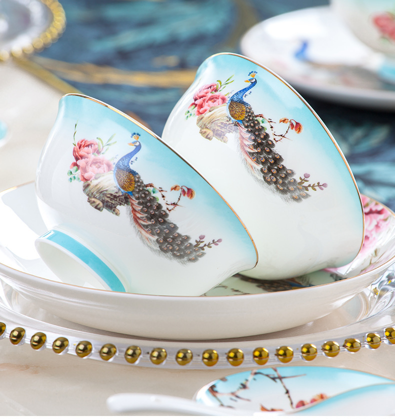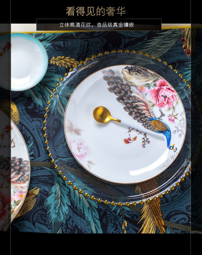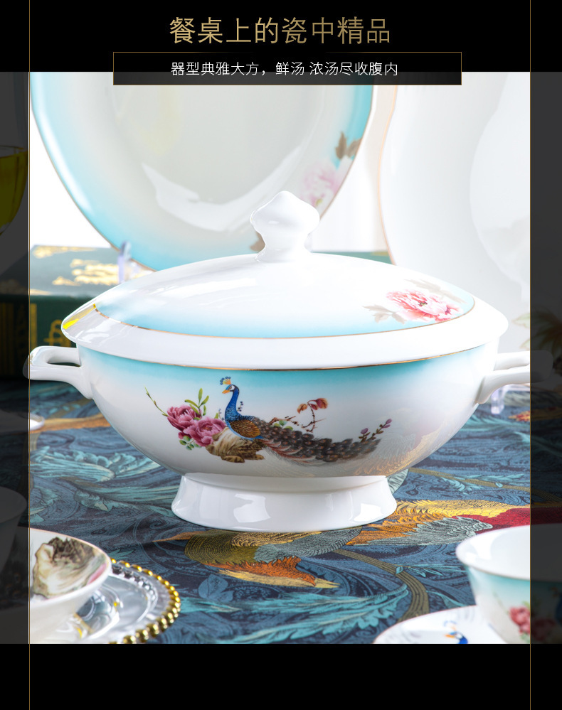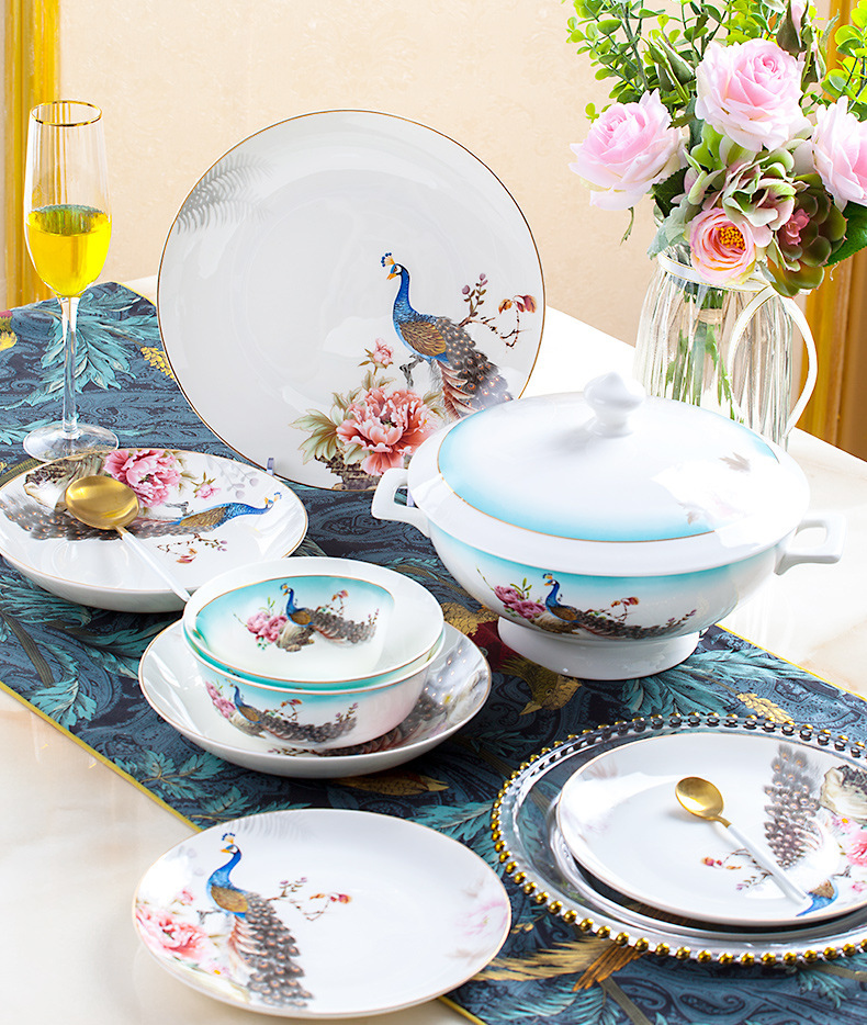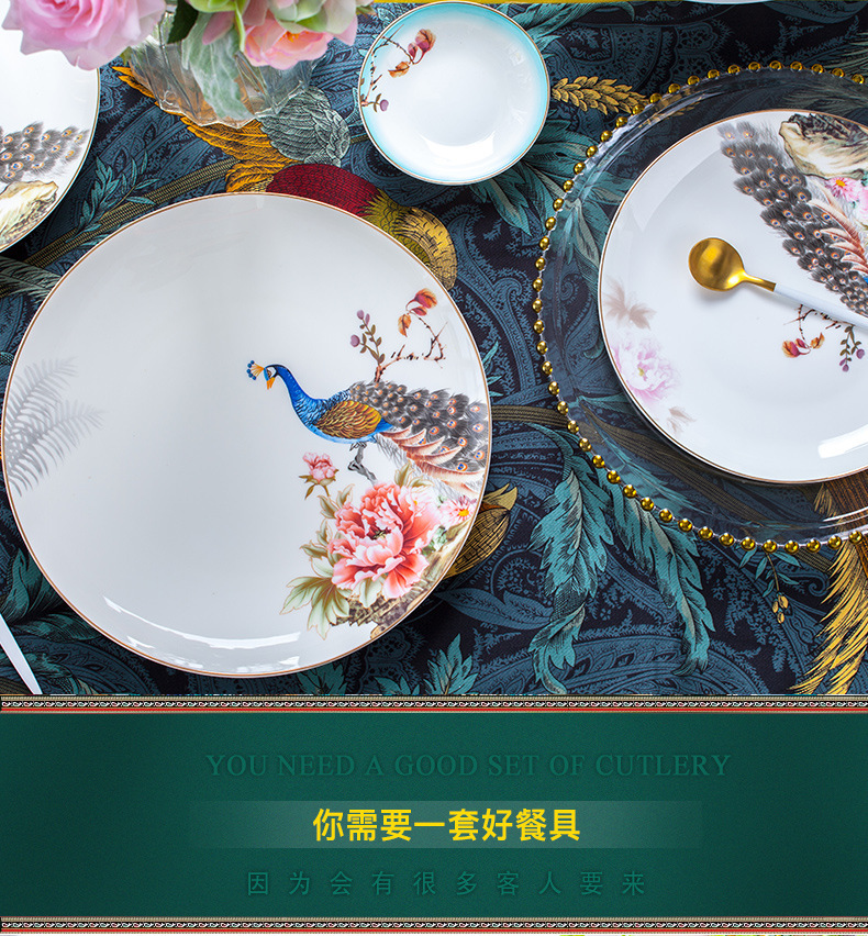 60 head Bai Niao Feng light luxury bone porcelain tableware set, Jingdezhen ceramic tableware set, household use